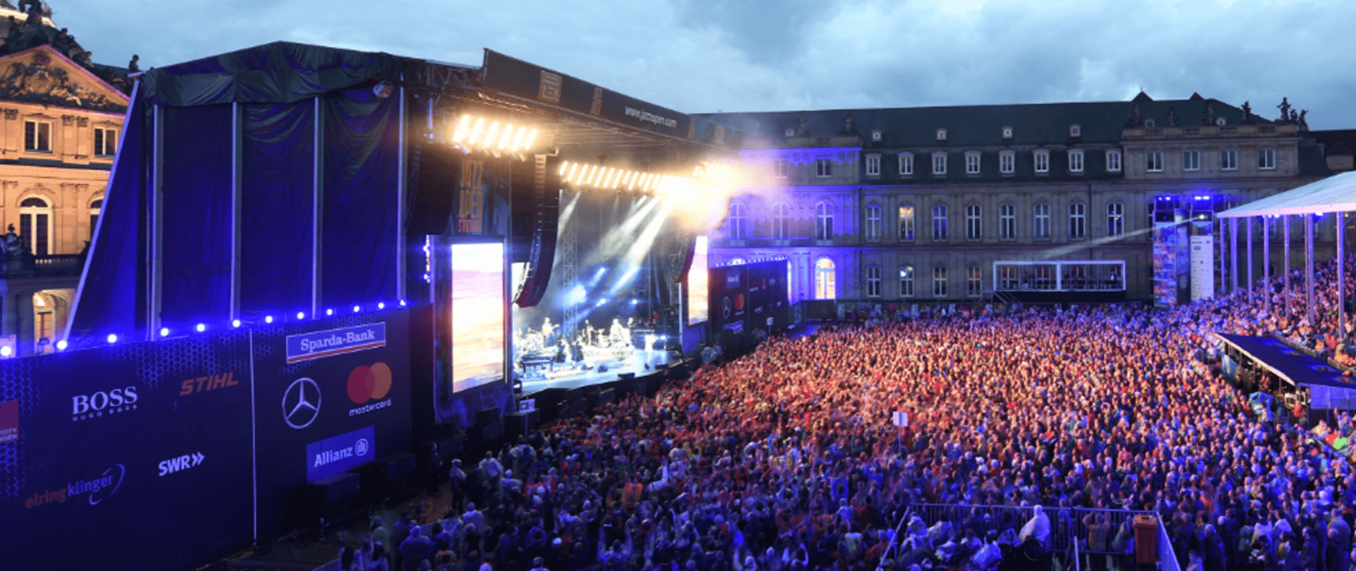 The live event in the heart of Stuttgart now sets the city’s rhythm for 12 days at the beginning of July and attracts over 60,000 visitors. It all began in 1994 as a small, refined festival for connoisseurs at the Stuttgart Liederhalle. When promoter Jürgen Schlensog took over the festival in 2008 as a newcomer to the music business, his goal was to develop an internationally renowned city festival. Since then, stars and legends from all musical genres have been regular guests. Big names like David Gilmour, Carlos Santana, Robert Plant, Chick Corea, Grace Jones, Herbie Hancock, Kraftwerk, Sting, Christina Aguilera, Diana Krall, Wynton Marsalis, Quincy Jones, Lang Lang, and Lionel Richie have all enjoyed – many more than once – the special Stuttgart feeling.
